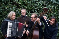 eigene, lebendige Weltmusik mit Akkordeon, Saxophon, Kontrabass u. Percussion