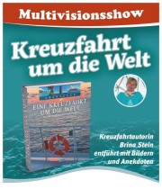In ihrer Multivisionsshow stellt Brina Stein die faszinierenden Bilder aus ihrem neuen Bildband vor, erzählt lebendig und ausführlich über das Leben an Bord und erläutert, was Kreuzfahrt in der heutigen Zeit bedeutet. Dabei geht sie gerne auf die Fragen ihres Publikums ein, denn möchte nicht jeder einmal, wenn auch heimlich, eine Reise um die Welt antreten? Mit ihren Geschichten zieht Brina Stein Sie in ihren Bann. Wer weiß, vielleicht sind Sie am Ende diese Show ihrem persönlichen Traumziel ein wenig näher gekommen oder haben sich einfach erfreut an der Schönheit unseres aufregenden Planeten ...
